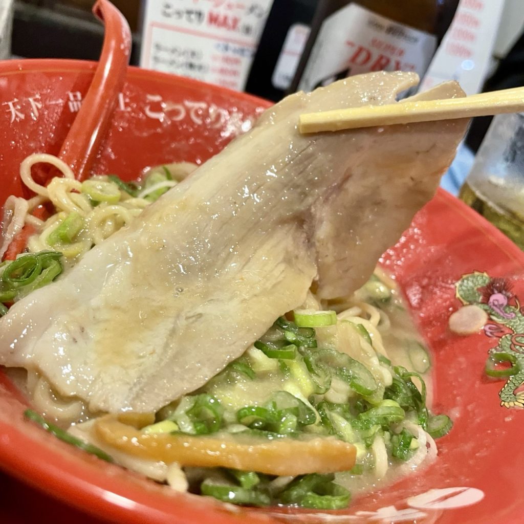 チャーシューはペラいですが大きめのが一枚。