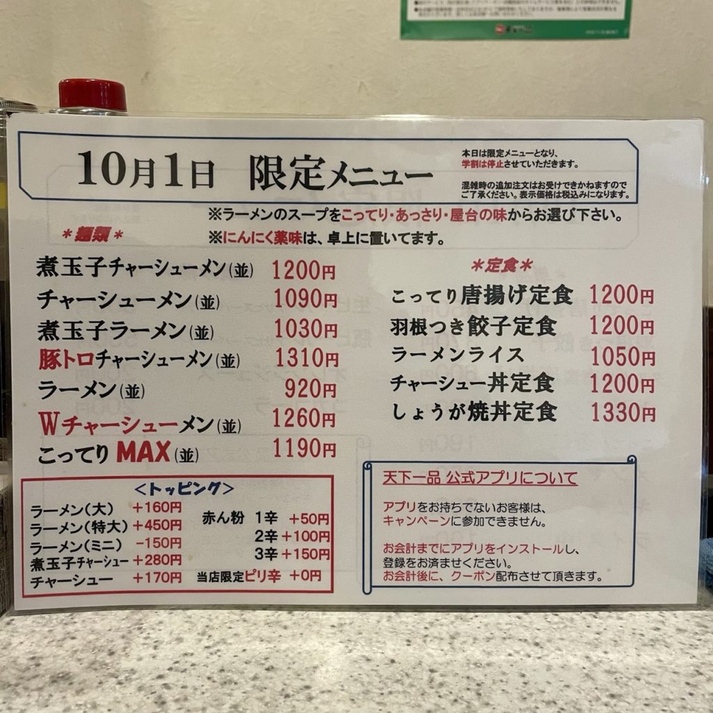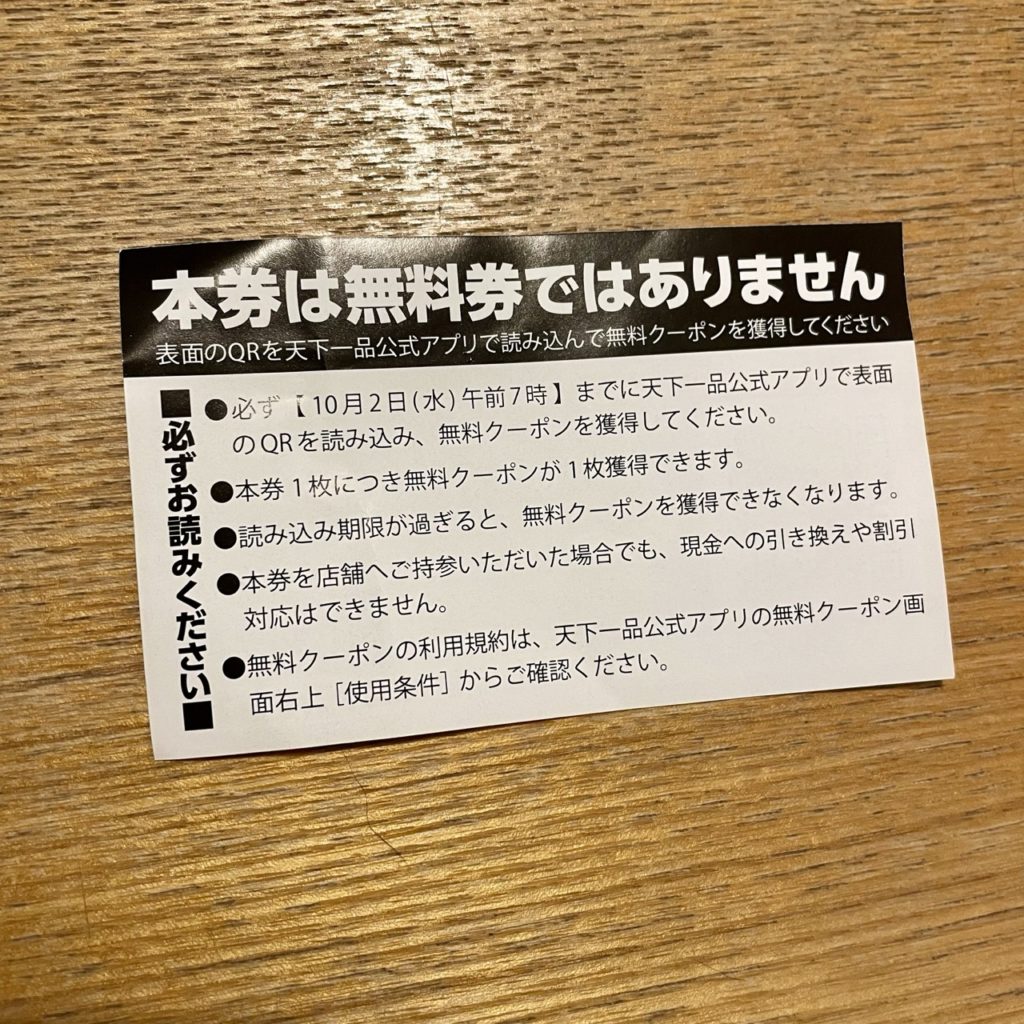 皆さんご存知、10月1日は次回使えるラーメン無料券が配られる日なんですよね。