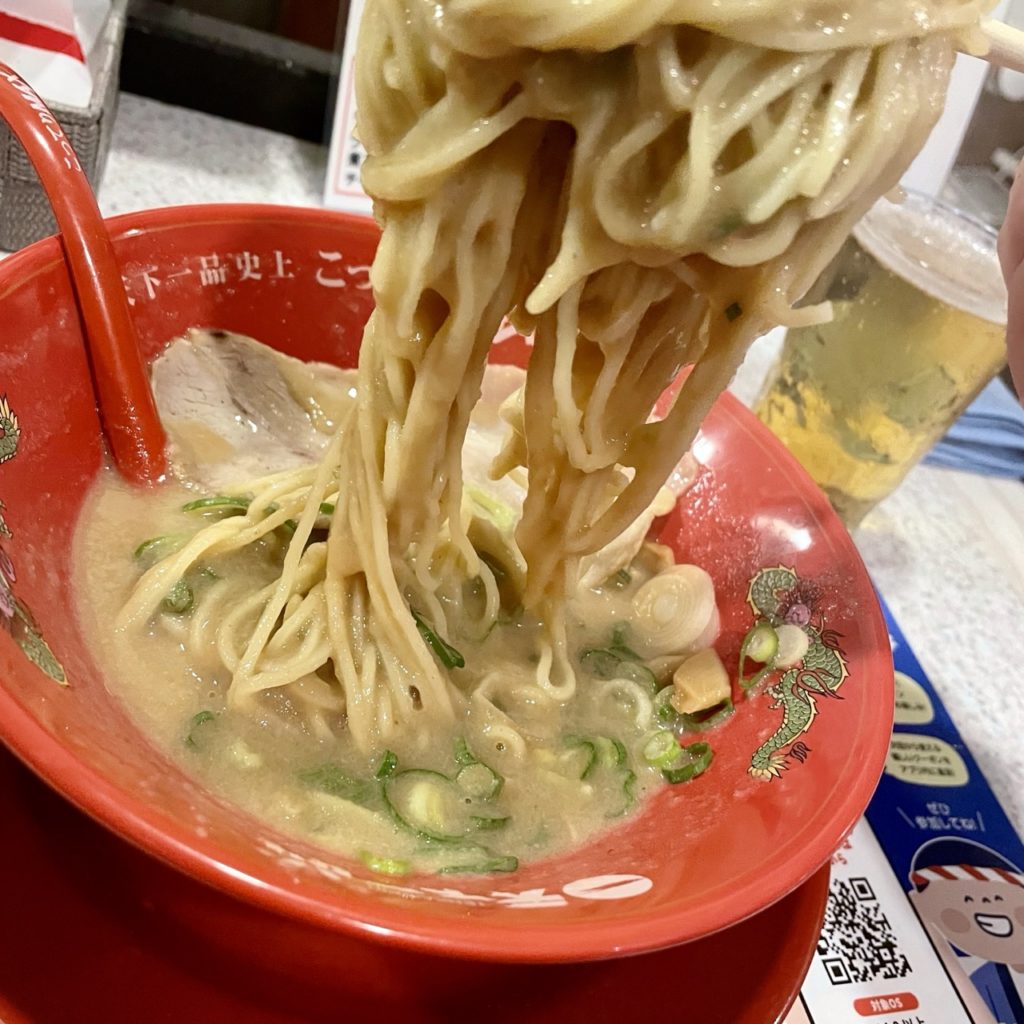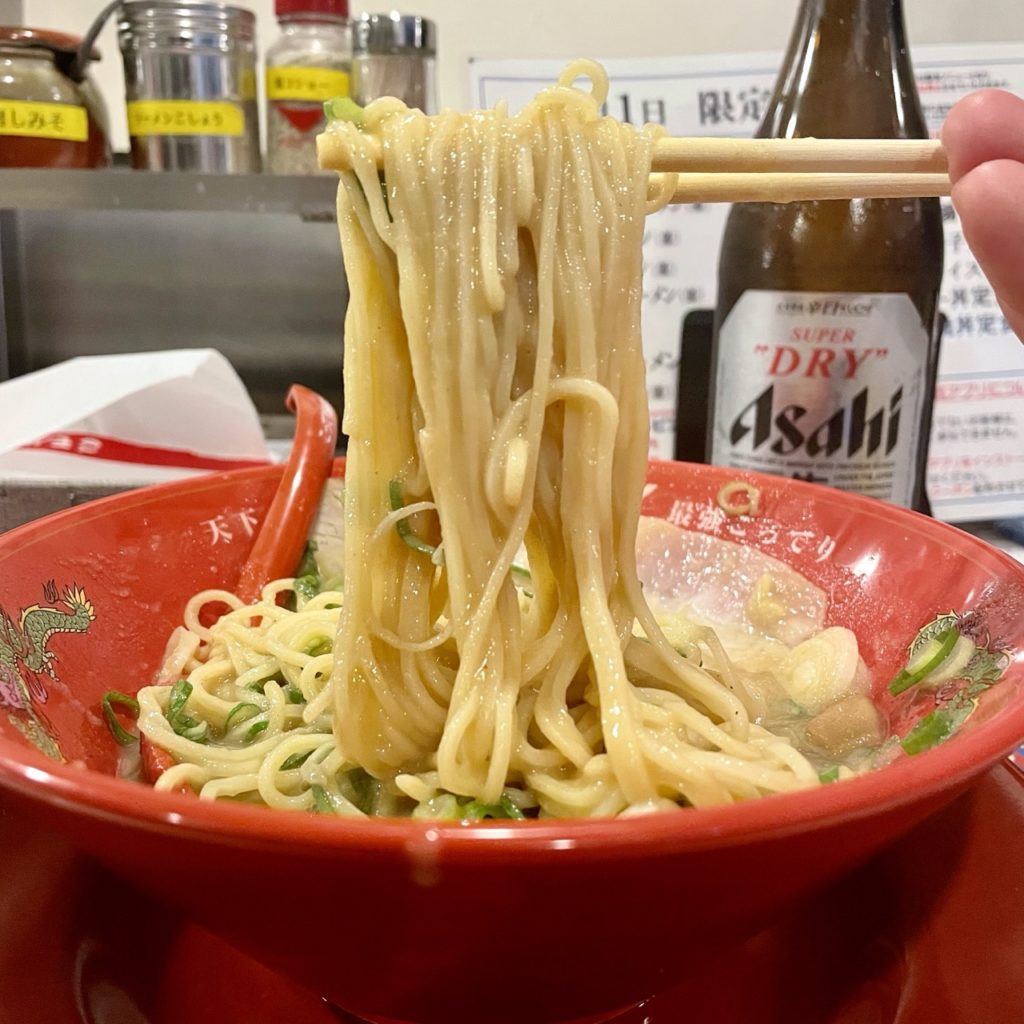 麺を持ち上げると、ごそっとなくなるスープ。