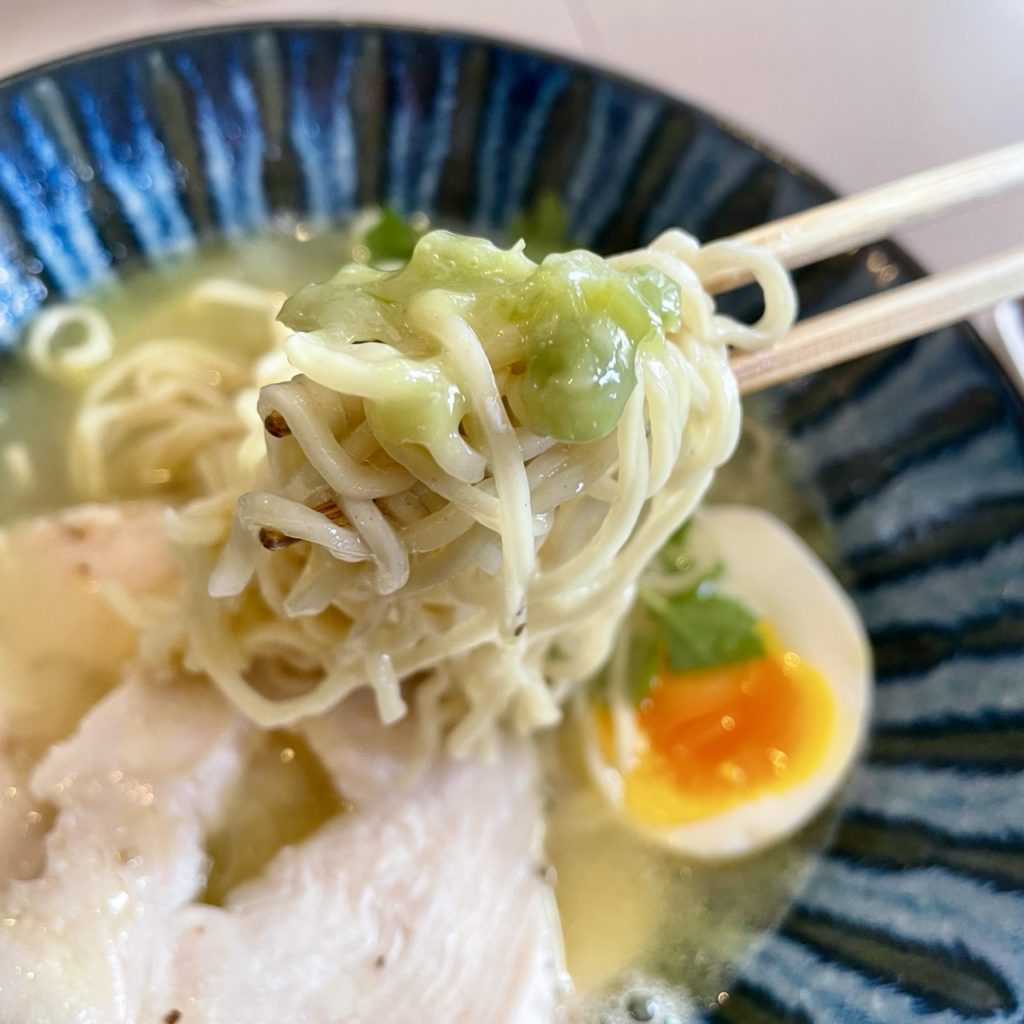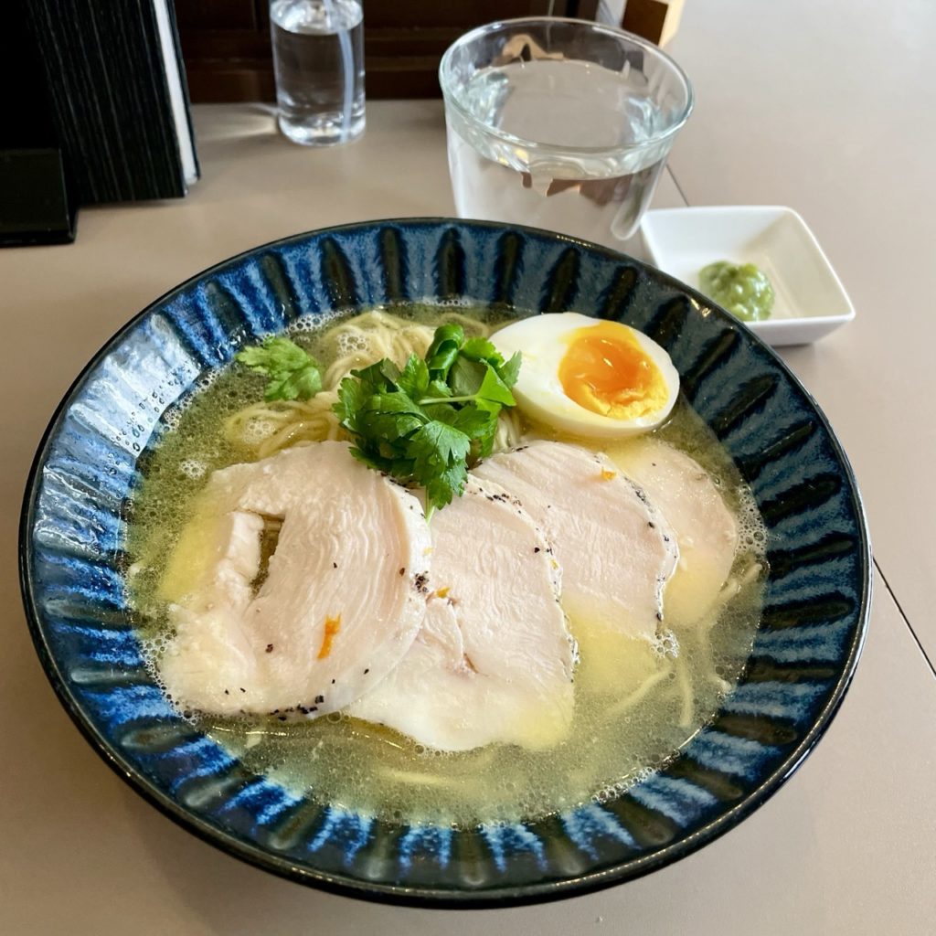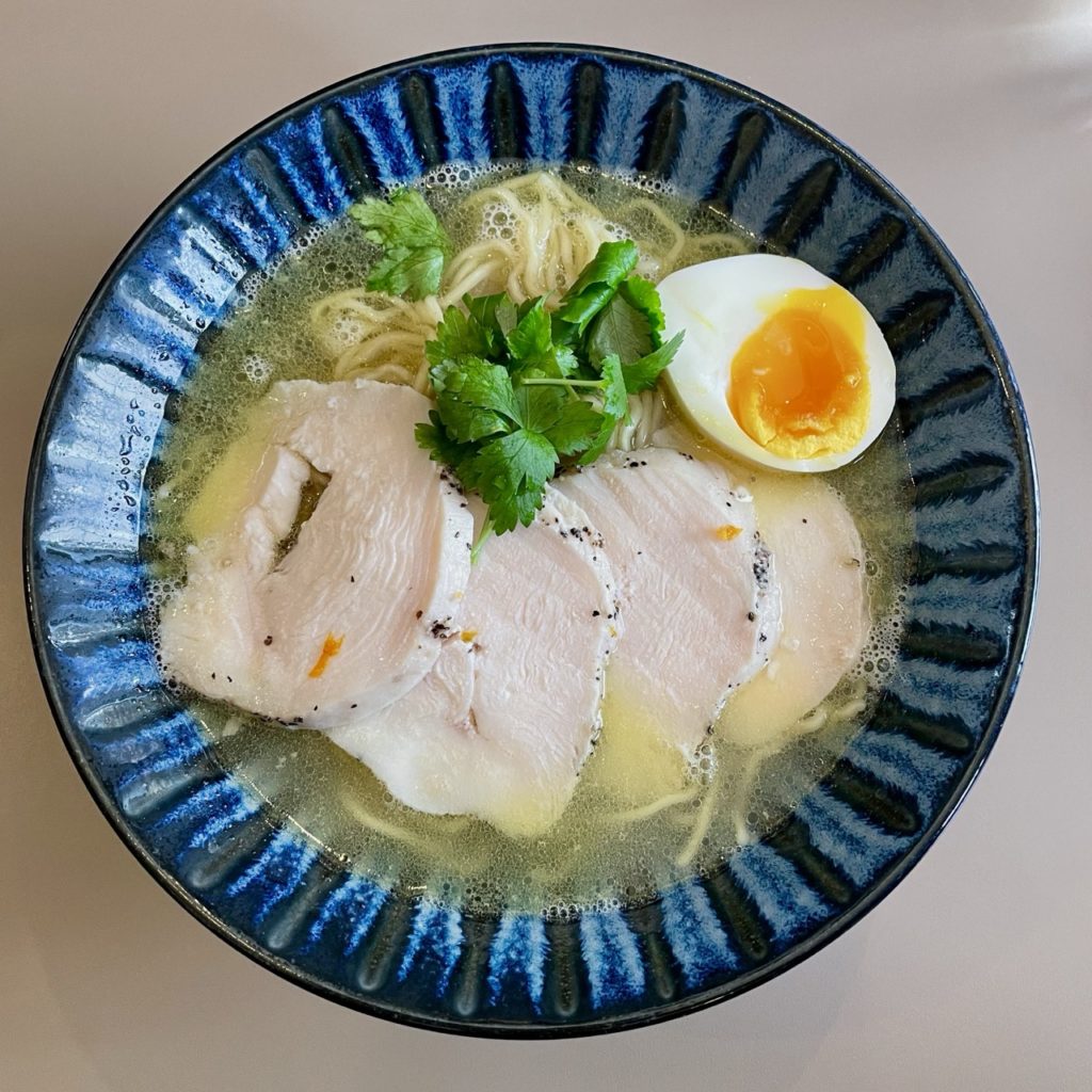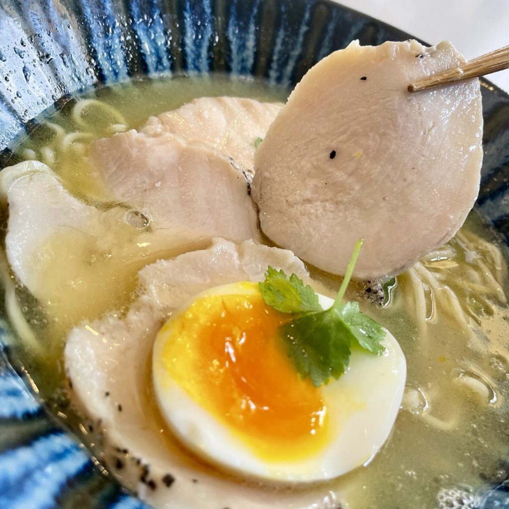 具材は鶏ハム・味玉・三つ葉。
