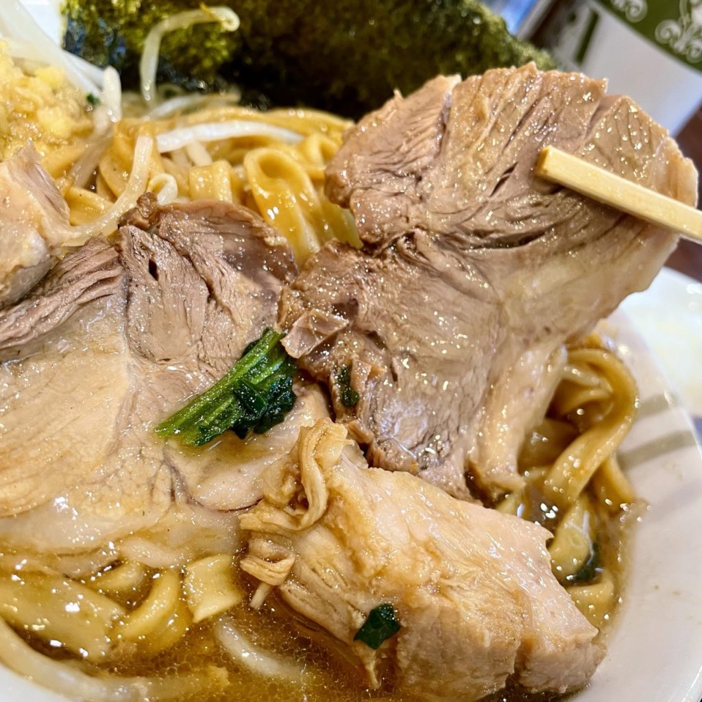 デフォで3枚?4枚?スープに浸けて温めたらもうプルップル!柔らかくてクッソ美味い!