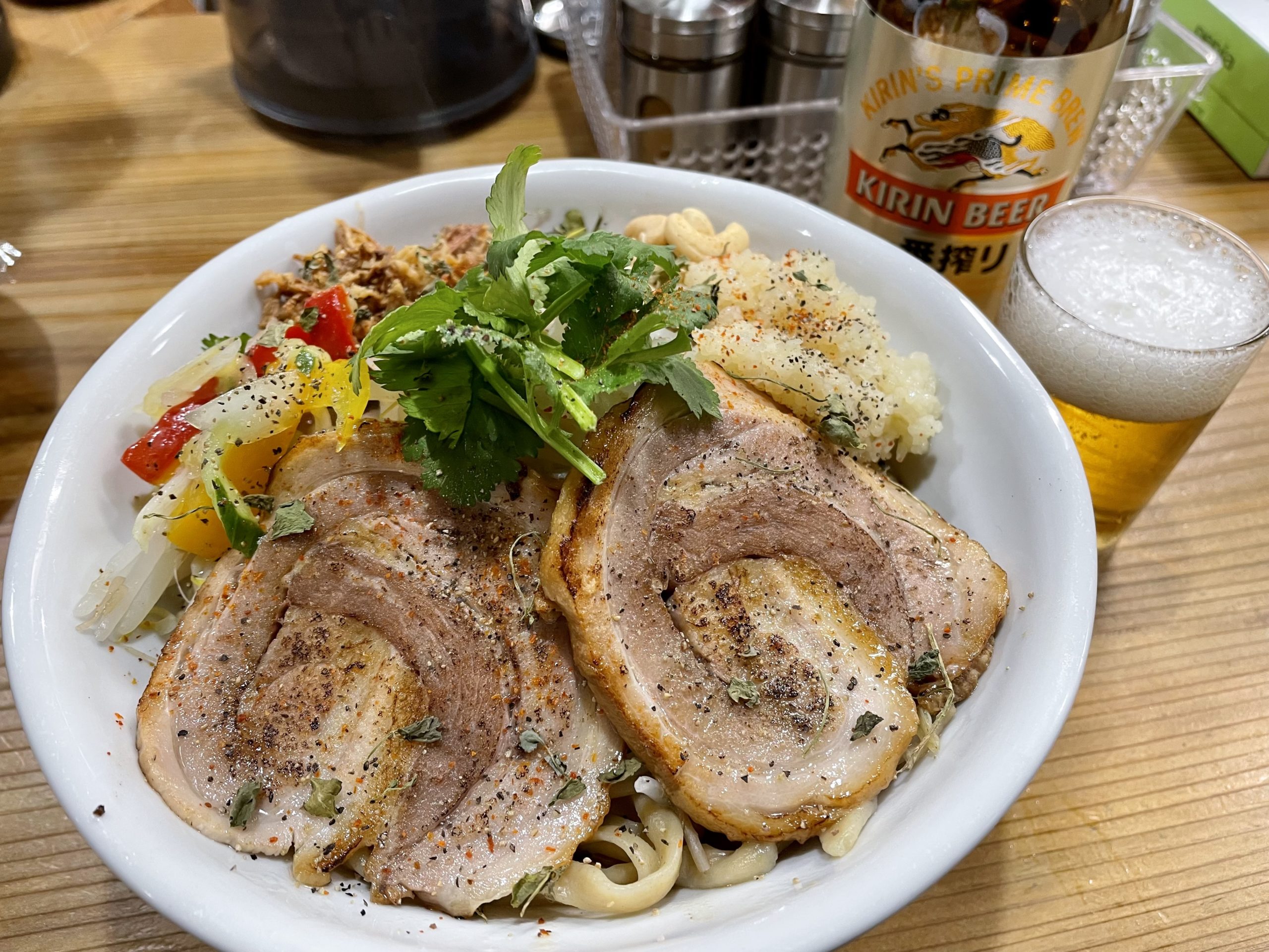 ムジロウは醤油ベースでガツンときていかにも二郎系油そばって感じですけど、ムジスパは豚骨スパイス油そばのムジロウ進化版って感じでまた別物やなこれ!