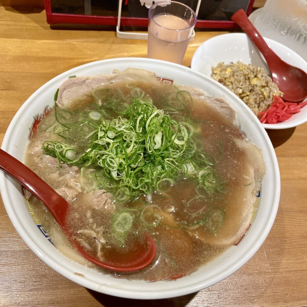 具材はチャーシュー・ネギ・もやしとシンプルですが、ネギは一般的な量よりも多く見えます。