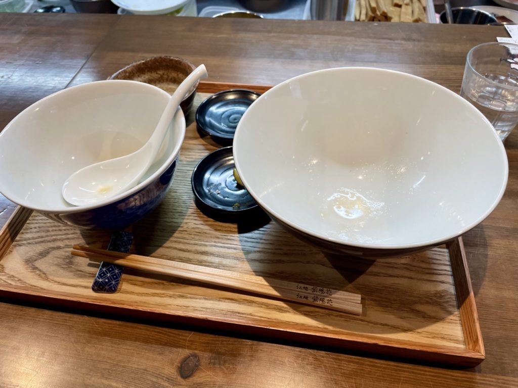 お店の方にお願いすると、つけ汁をスープで割っていただけます。