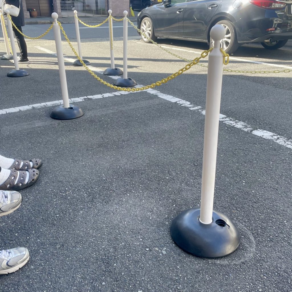 並び中はこの第一駐車場のポールで区切られたエリアで列を作ります。