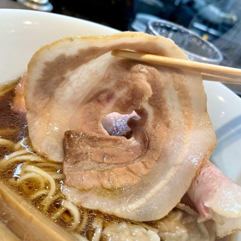 スープは終盤に差し掛かると、チャーシューの出汁で鶏豚感が強くなり印象がガラッと変わって美味しかった!