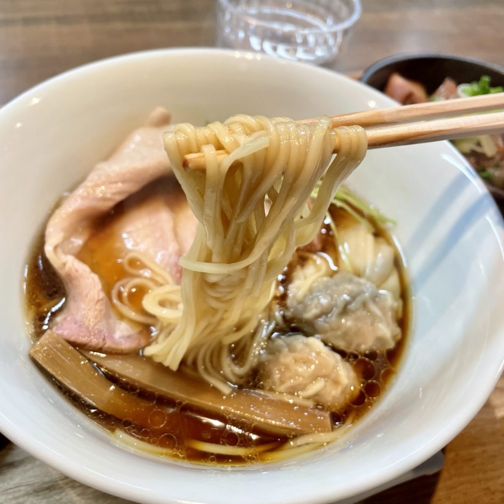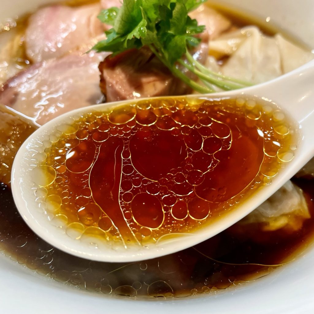 鶏が主体で豚も使われた澄んだ動物系スープに芳醇な醤油の一雫。
