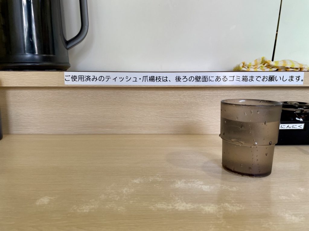 つまようじとティッシュも席ごとに設置されており、とても手厚いサービスに感じました。