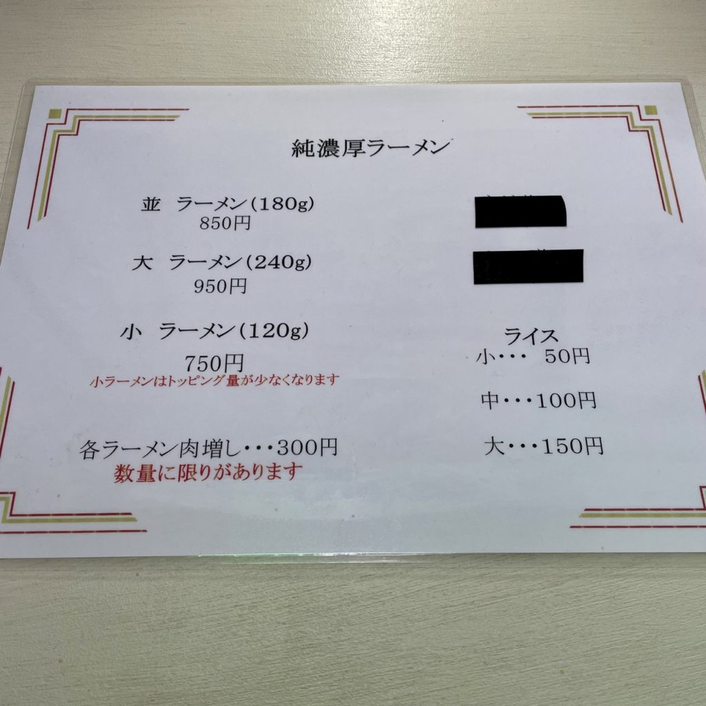 メニューはラーメンとライスのみですが、味がドロ・なめらか・ハーフ&ハーフとあり(日によりけり、公式の営業情報参照)、それぞれ濃厚度合いが異なります。