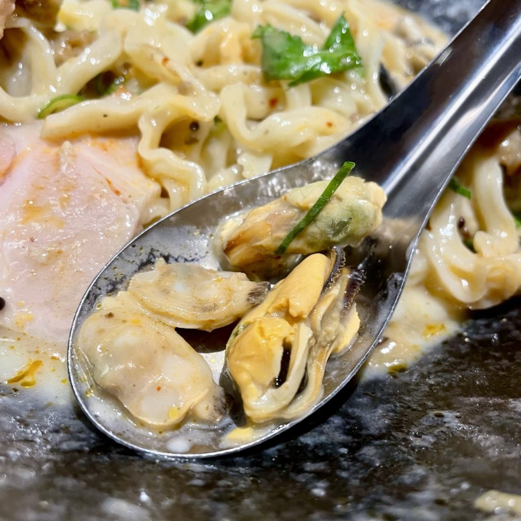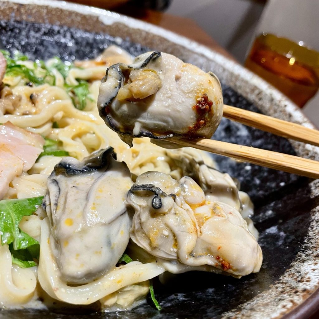 チャーシューと牡蠣は本来2切れずつですが、大盛で倍量に増えています。