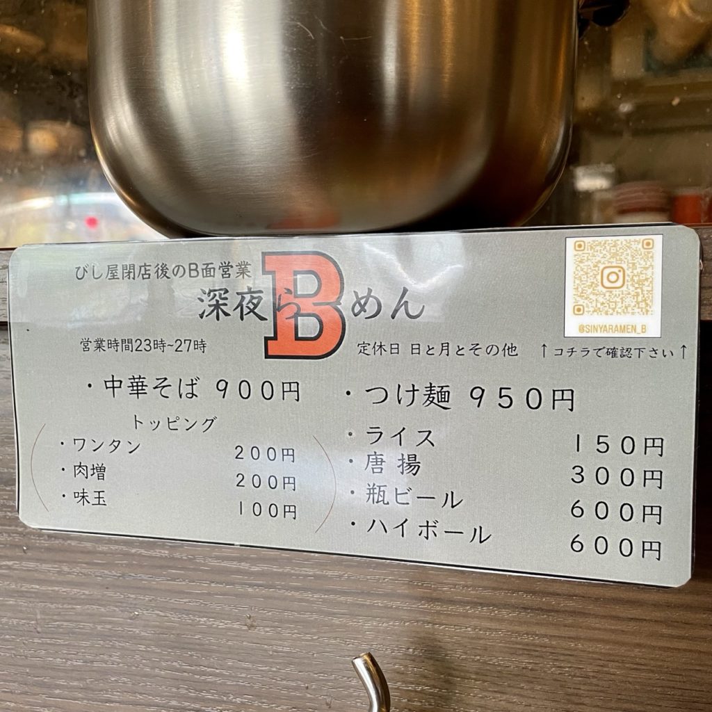 びし屋さんのSNSはX(旧Twitter)のみですが、こちらの深夜らーめんBにはInstagramアカウントがありました。