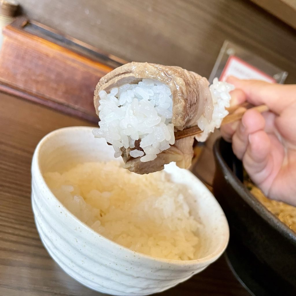 濃厚スープに浸した肉で巻いて食う米最高〜!