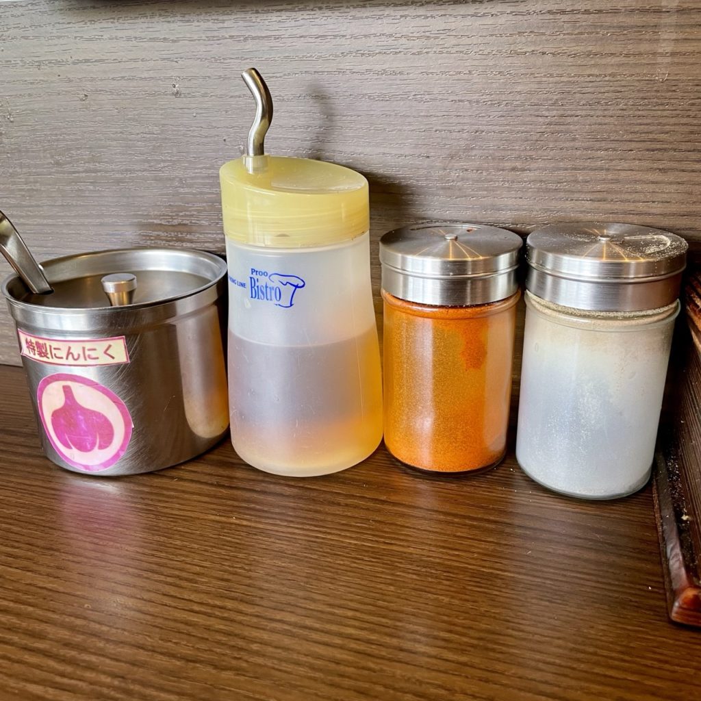 卓上のにんにくは荒めのみじん切りで、フレッシュな風味がええね!