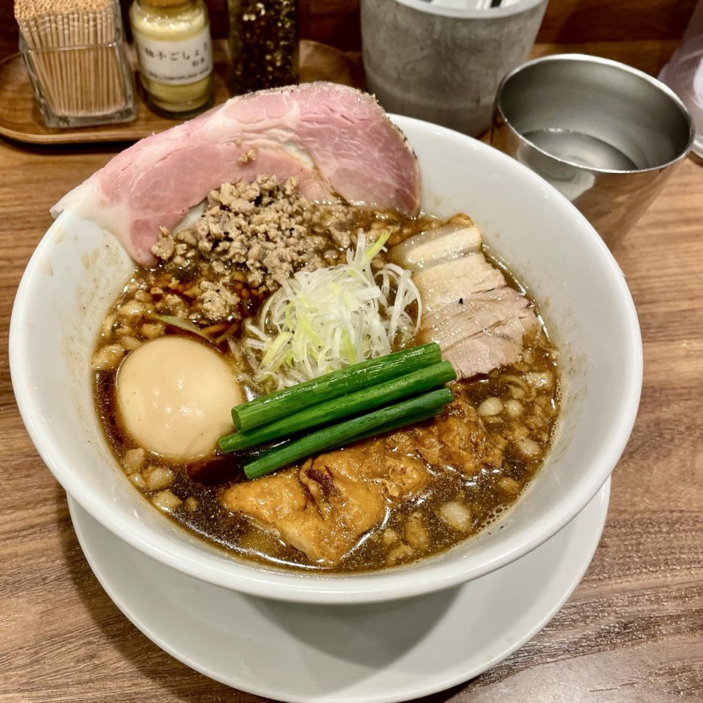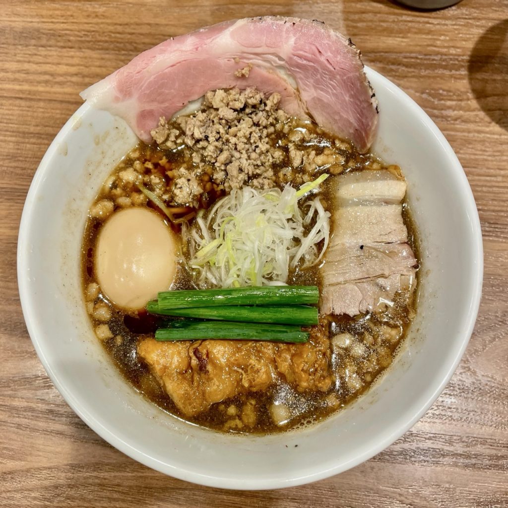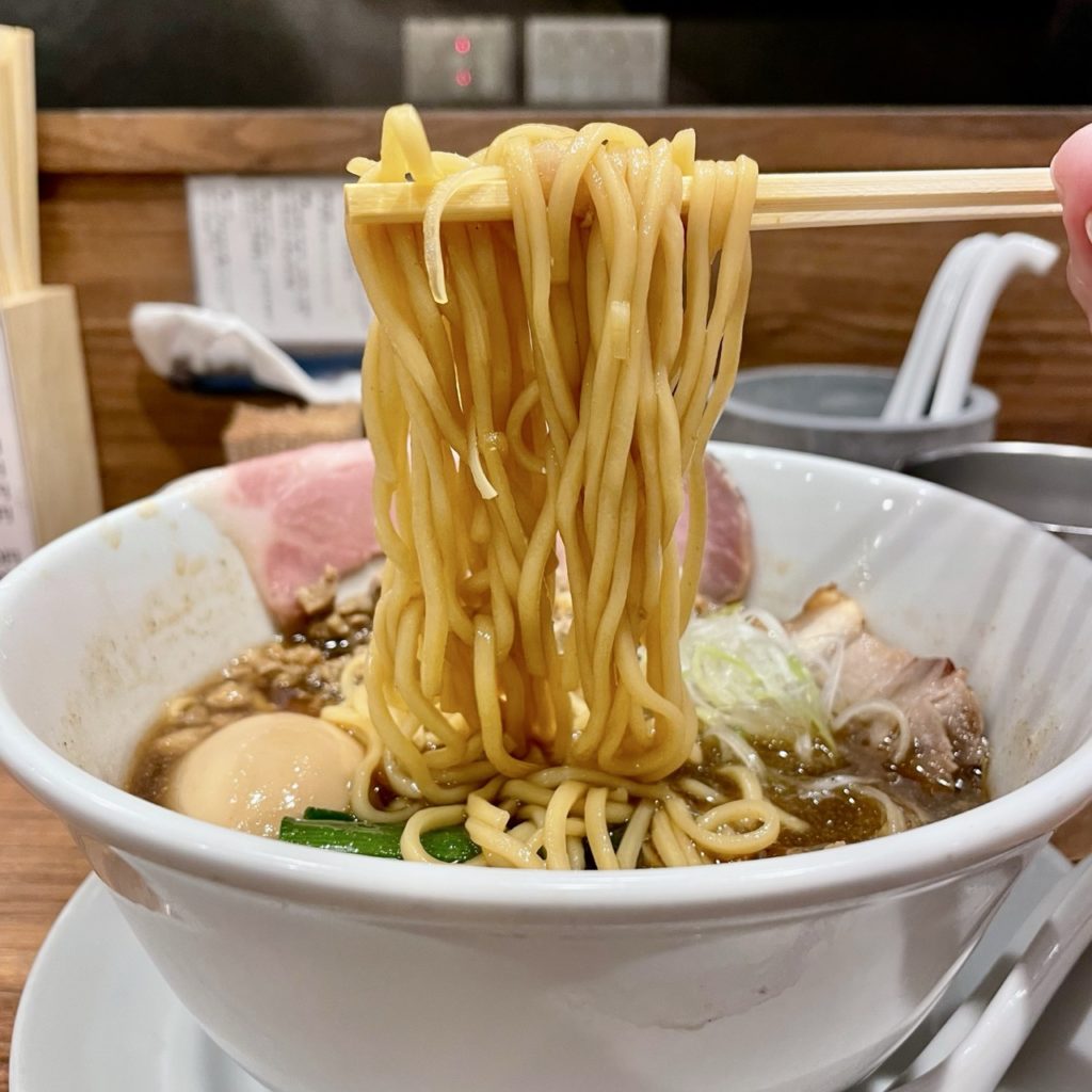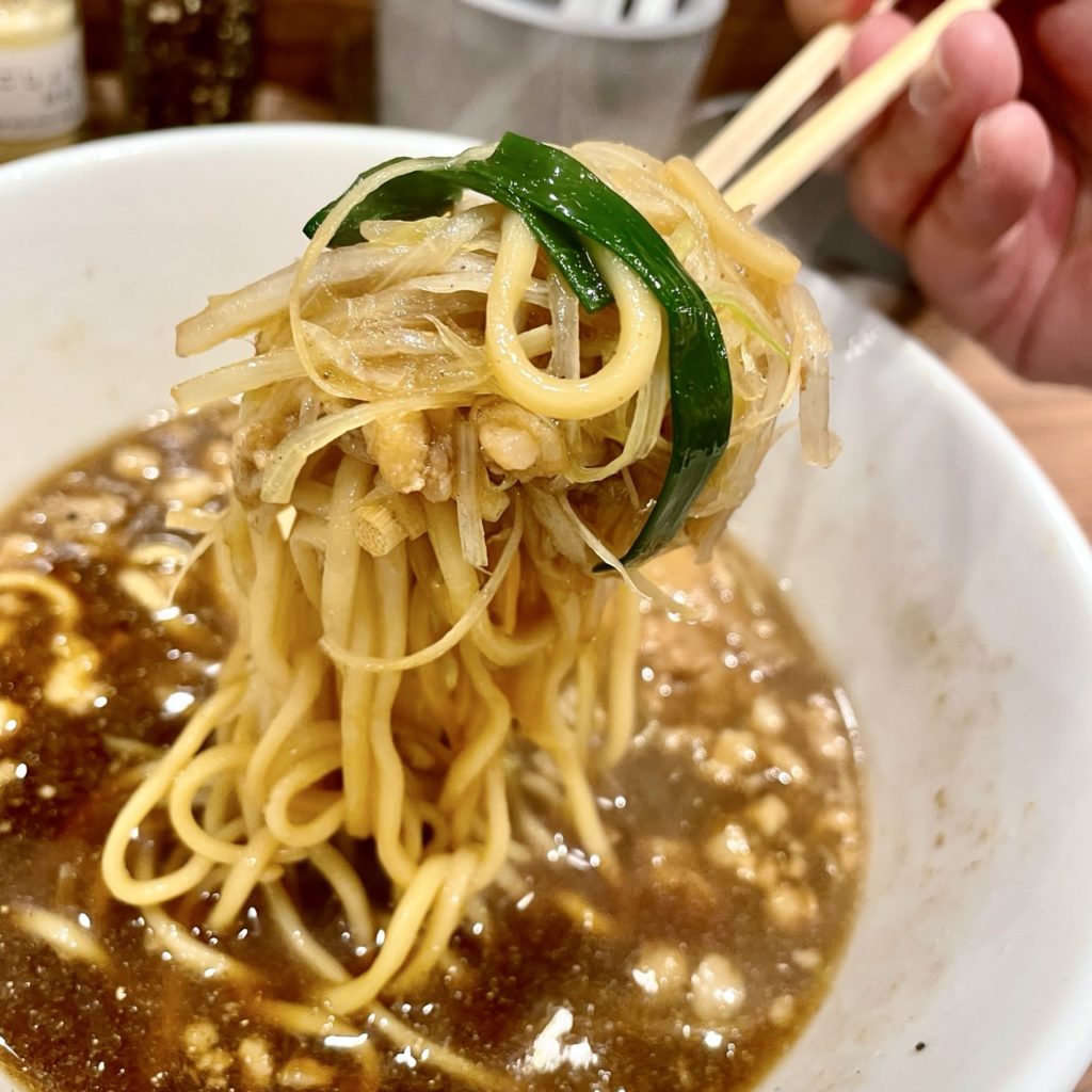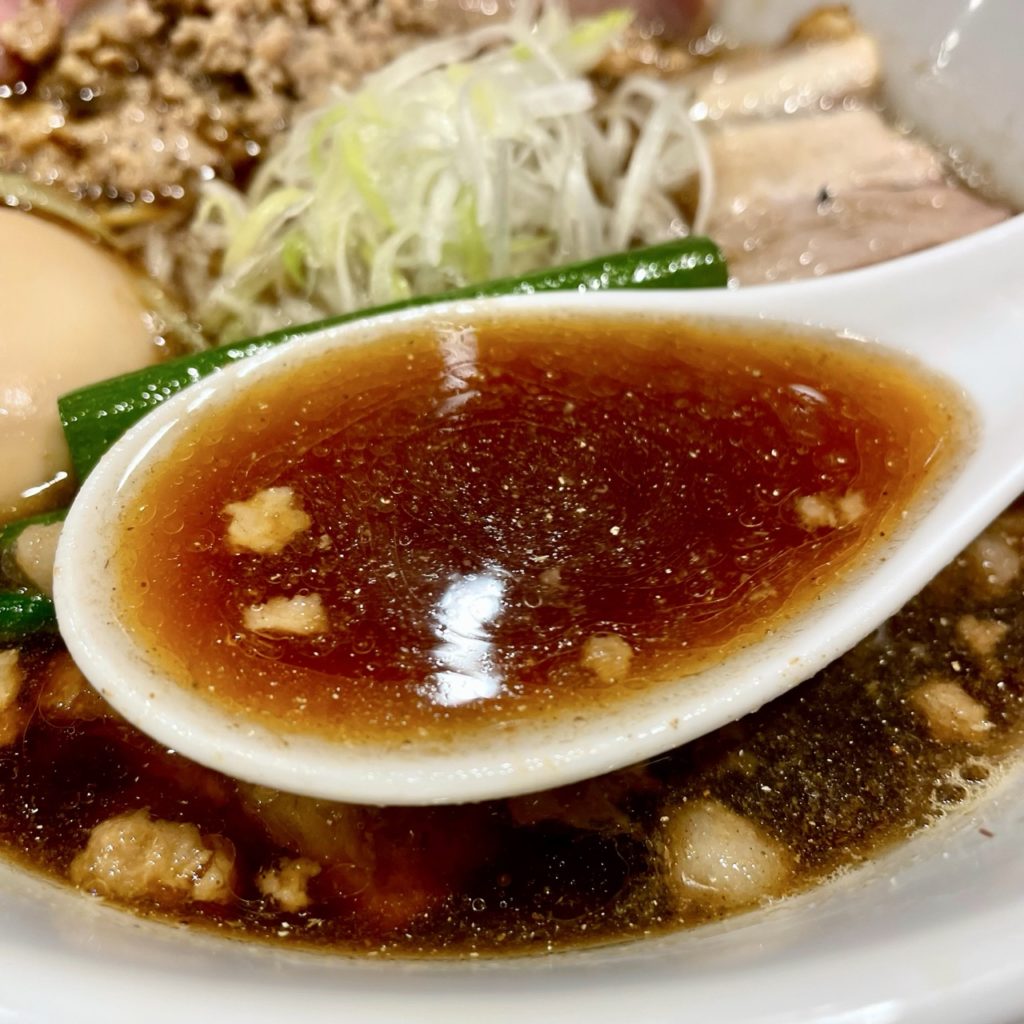 見た目の色の濃さよりもずっと飲みやすいですが、たくさん入った背脂やミンチからも動物系の旨味が重なり、非常に厚みのある味わい。