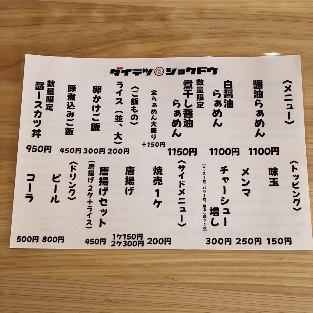 麺のメニューは醤油らぁめん・白醤油らぁめん・煮干し醤油らぁ麺の三本柱。
