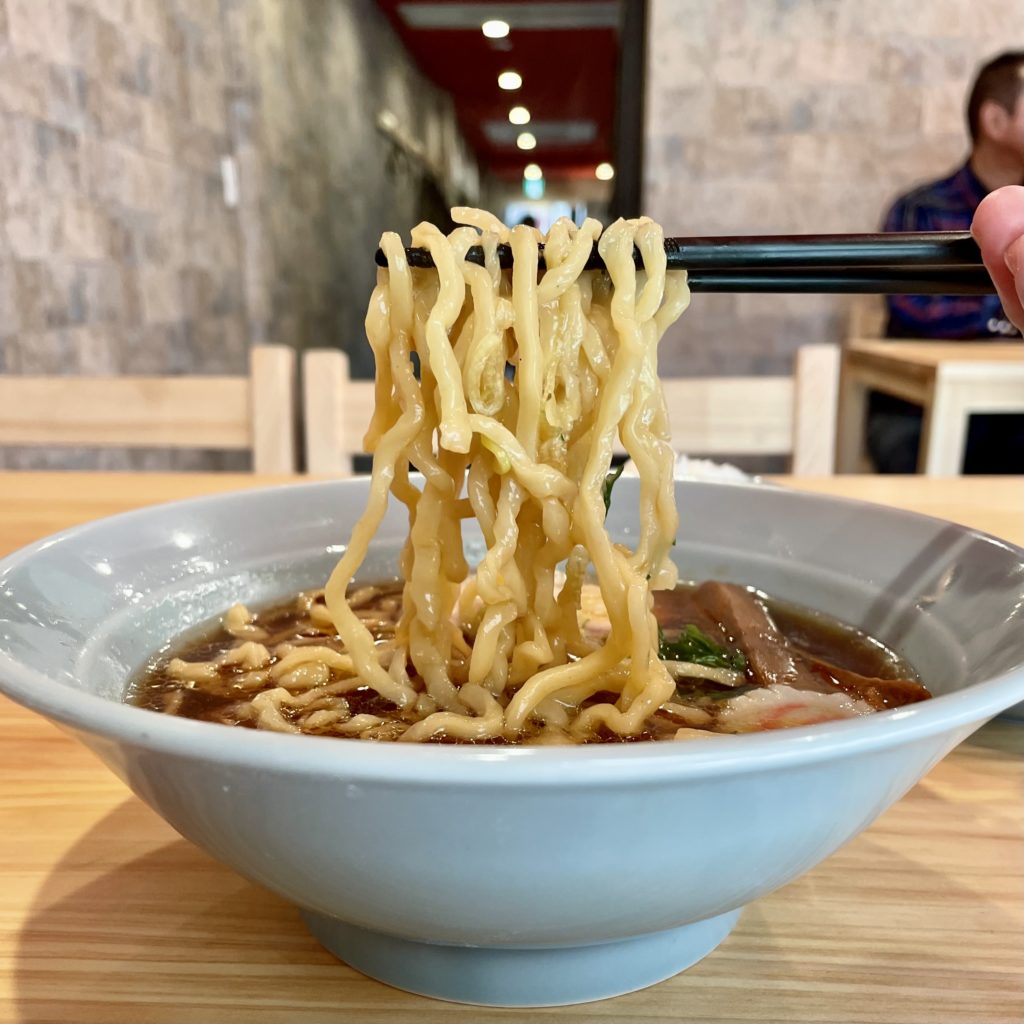 縮れた手打ち式手揉み麺は噛めばモチモチ、啜ればプリッとした口当たりで味も食感も最高!