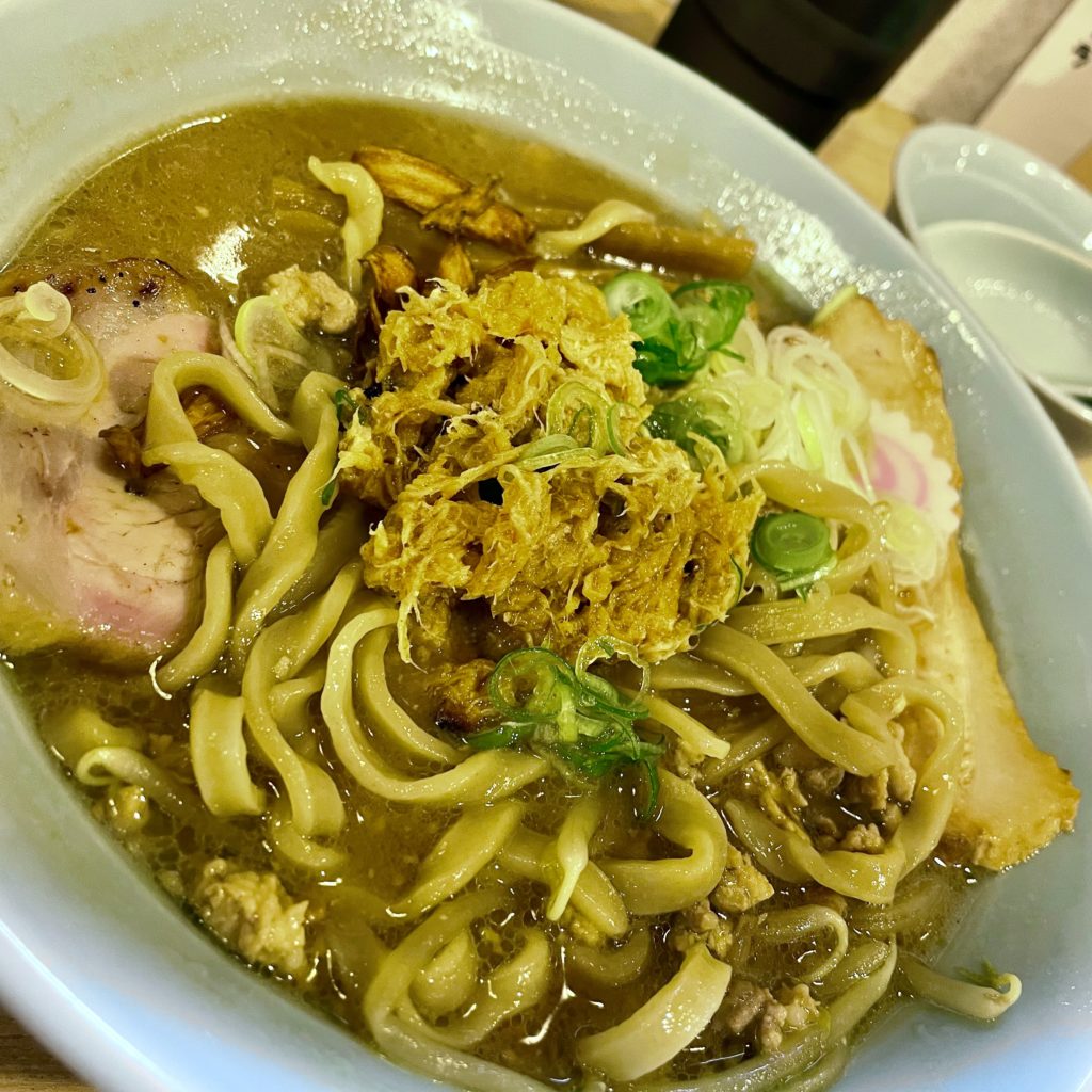 具材はチャーシュー・ミンチ・メンマ・揚げごぼう・ナルト・ネギとバラエティ豊か。