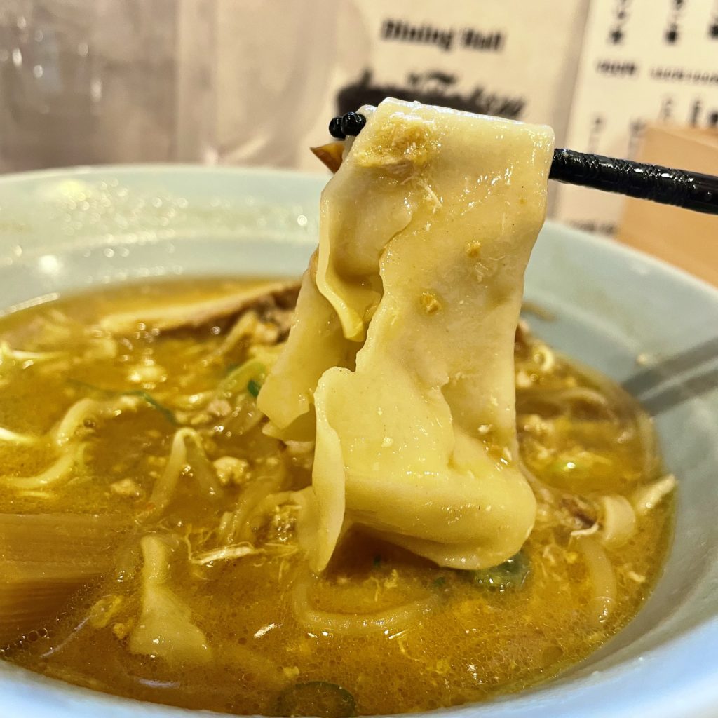 ノーマルの手打ち式麺の方が不揃い感は強いけど、このビラビラ感は食べごたえあって美味しい!