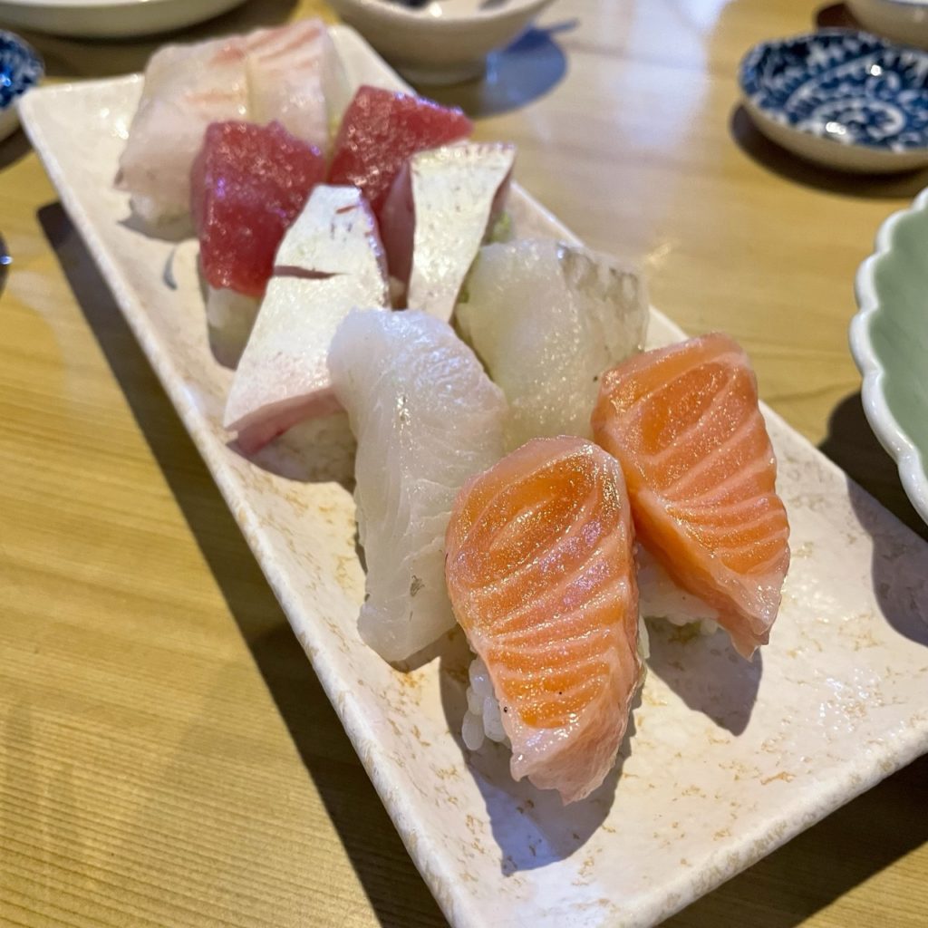 手前からサーモン・平目・かんぱち・よこわ・鯛だったかな。