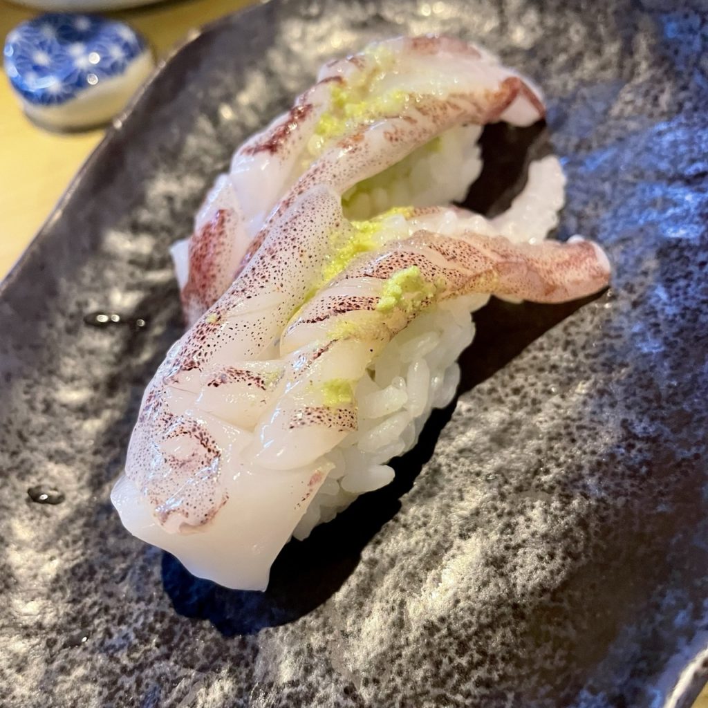 いかは甘みが素晴らしく、なめらかな舌触りで期待通りの美味しさ。