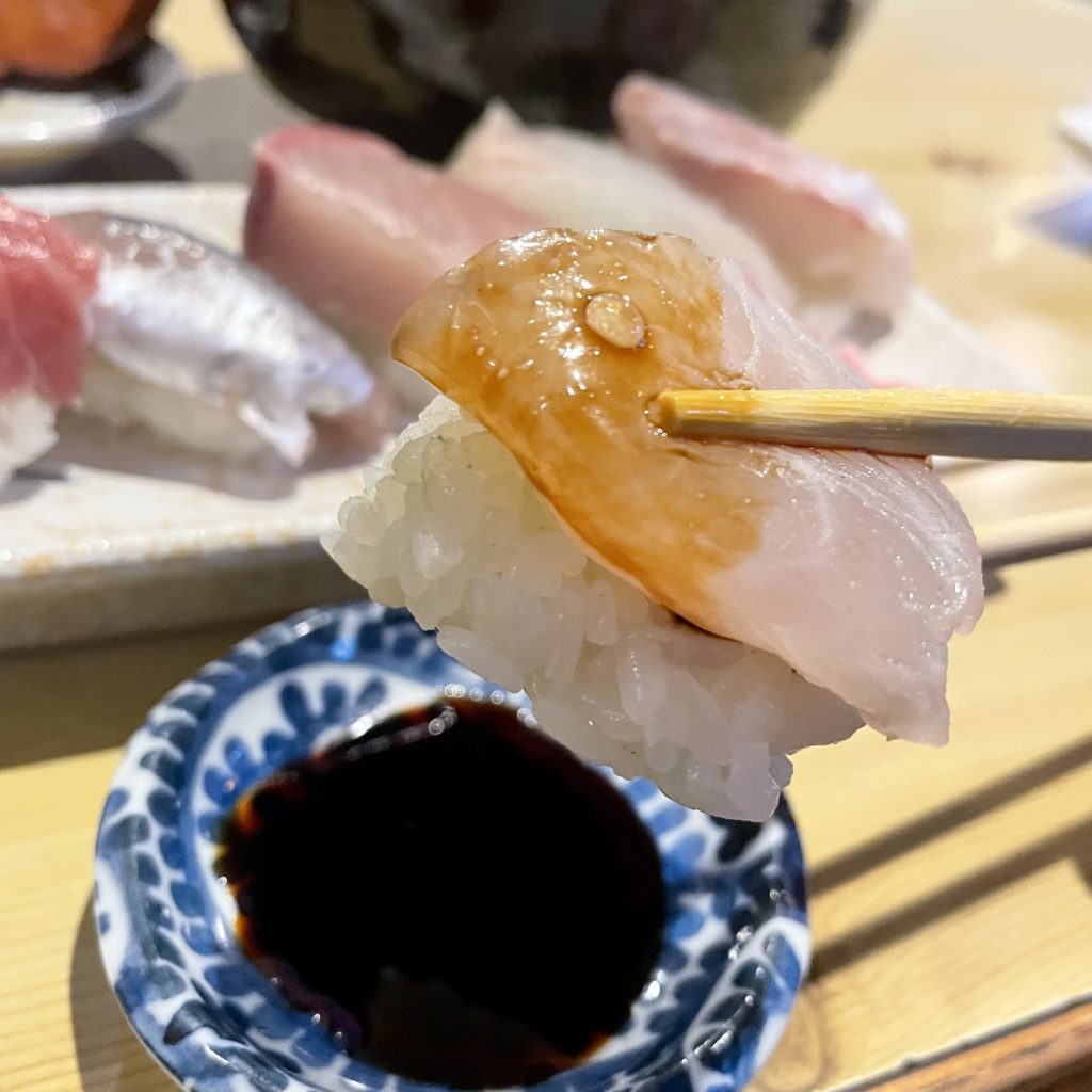 ネタはひらめ・マグロ・アジ。カンパチ(ブリ?)・ひらめ・鯛でしょうか。