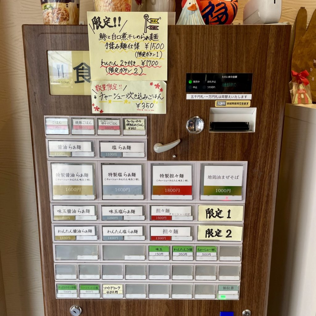 麺大盛の設定もあり、味玉の食券を購入して口頭で伝えることで完了します。