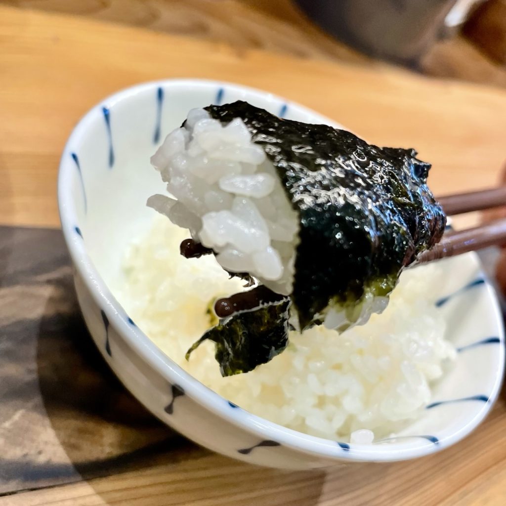 スープに浸した海苔で巻いて食う米も旨い!