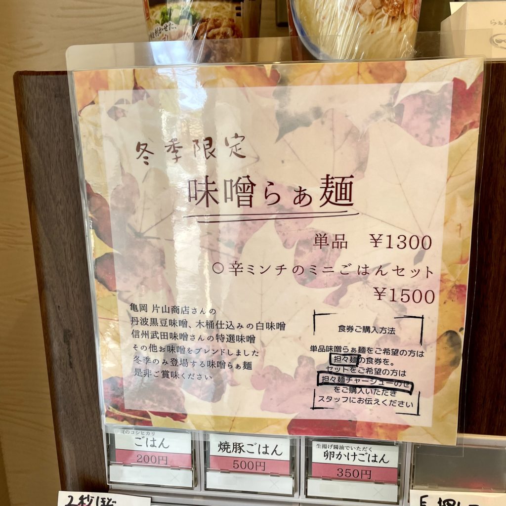 本日のお目当ては、冬季限定の味噌らぁ麺!