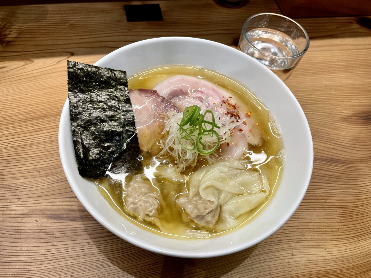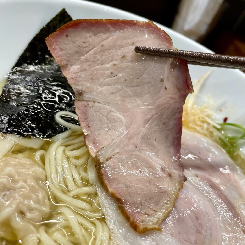 具材は2種のチャーシュー・わんたん・海苔・ネギも2種盛られています。