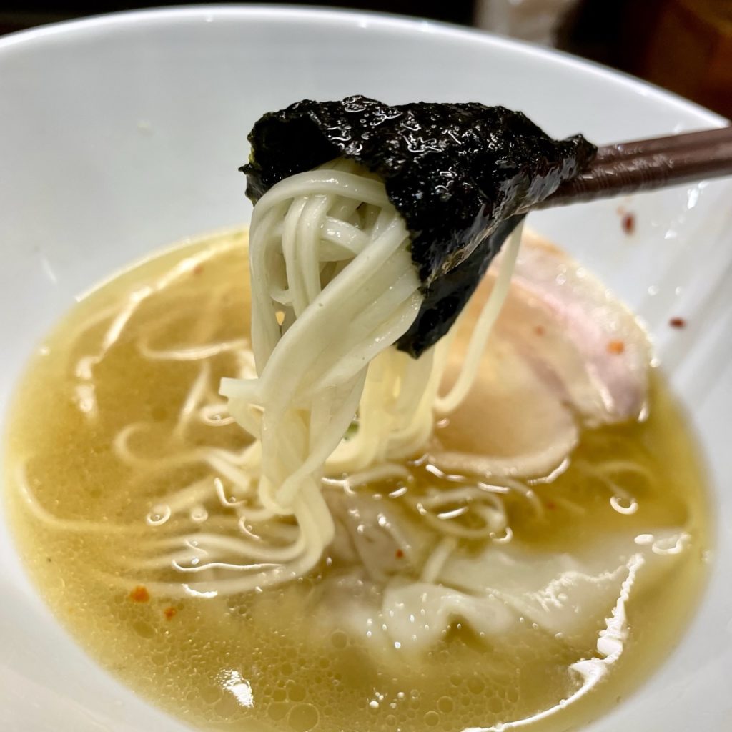 いつもの食べ慣れたシルキーな口当たりですが、今日の麺はどことなく軽い感じ。