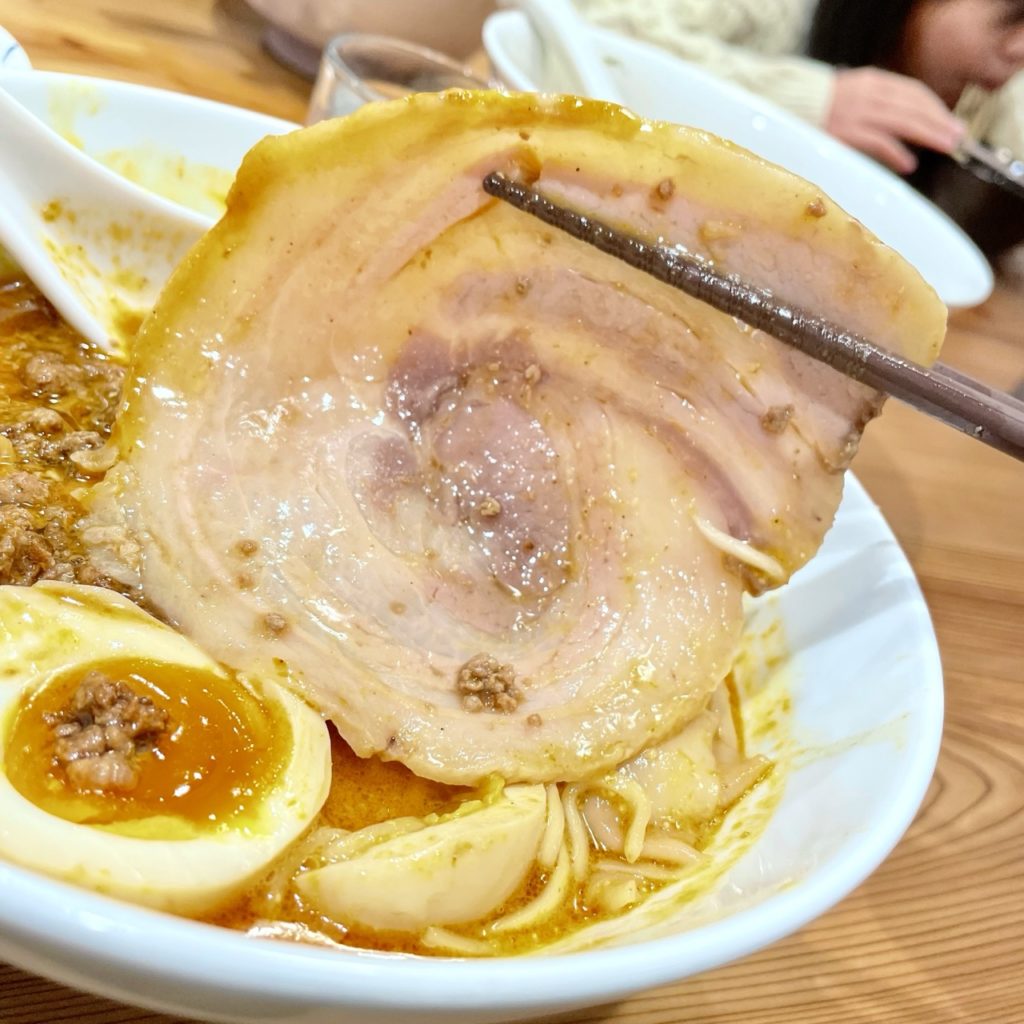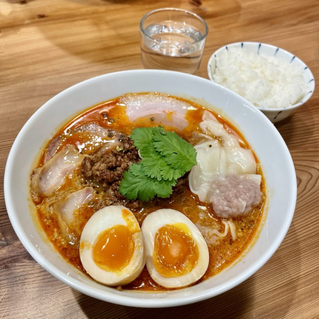 具材は2種のチャーシュー・わんたん・ミンチ・味玉・ネギ・パクチーとなります。