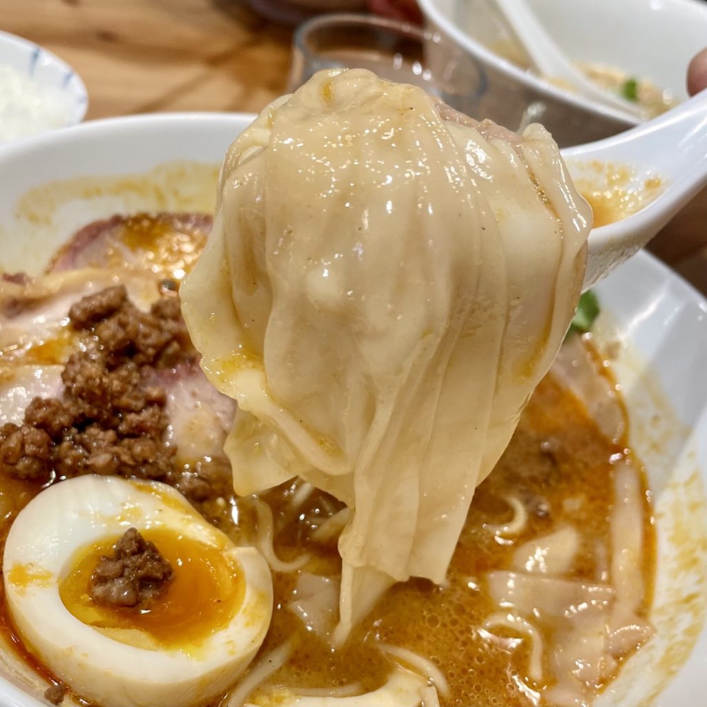 いつもシルキータッチな細麺は、担々麺だとどこかツルッとむっちりな雰囲気。