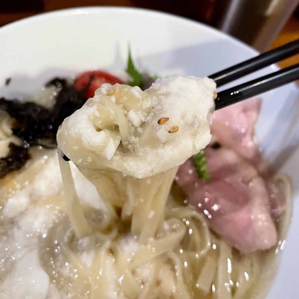 冷やされたスープからまず来るのは煮干の旨味出汁!もっと昆布水みたいにトロトロなのかと思いきや、意外とサラサラした質感。