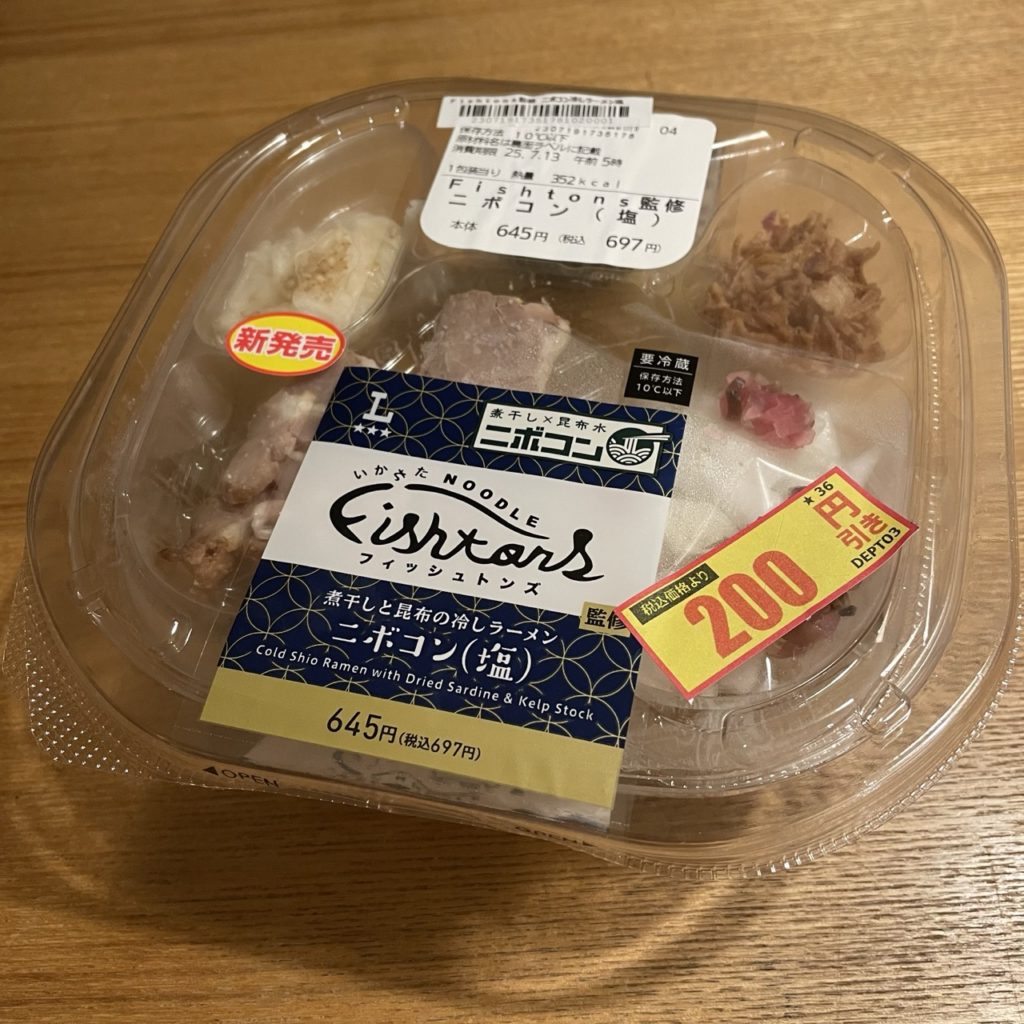 ちなみにローソンで販売されていた同店監修のチルド麺も少し前に食べましたが、麺は美味しかったんですが塩ダレが強すぎて煮干しも昆布も感じられず、お店のとは別物でした^^;