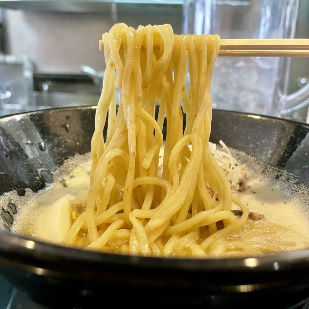 麺は全粒粉が練り込まれた中太ストレート麺!