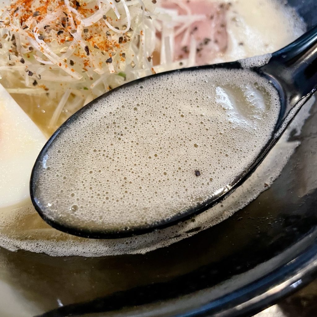 ブレンダーで泡立てられたスープは、見た目よりもサラサラしていますね。