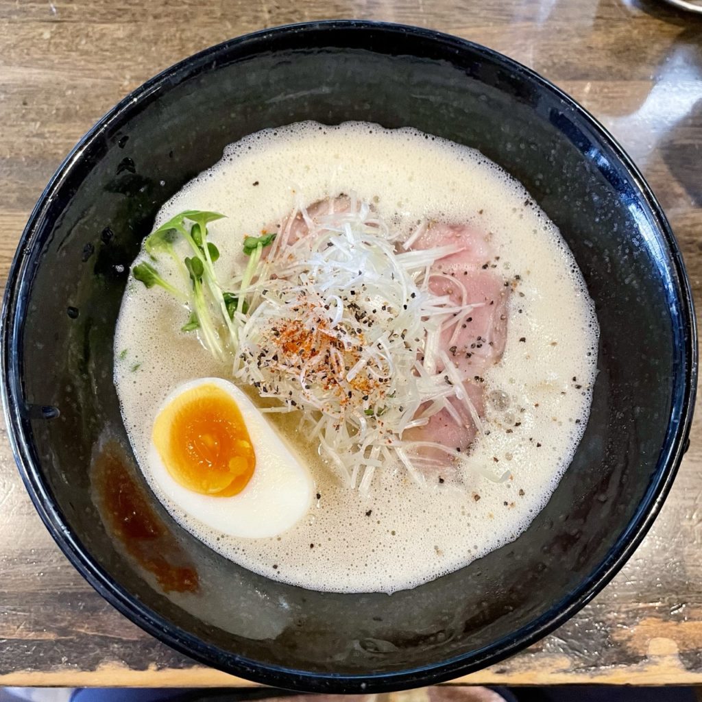 具材はチャーシュー・煮玉子・白髪ネギ・かいわれ大根。