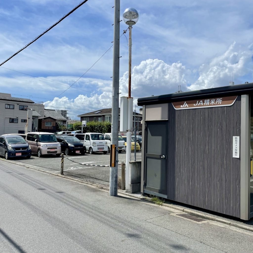 専用駐車場があるということで店員さんに聞くと、お店の向かいのJAの建物の裏手にコイン精米機があり、その裏の月極駐車場の中、一番奥の1番と2番になります。