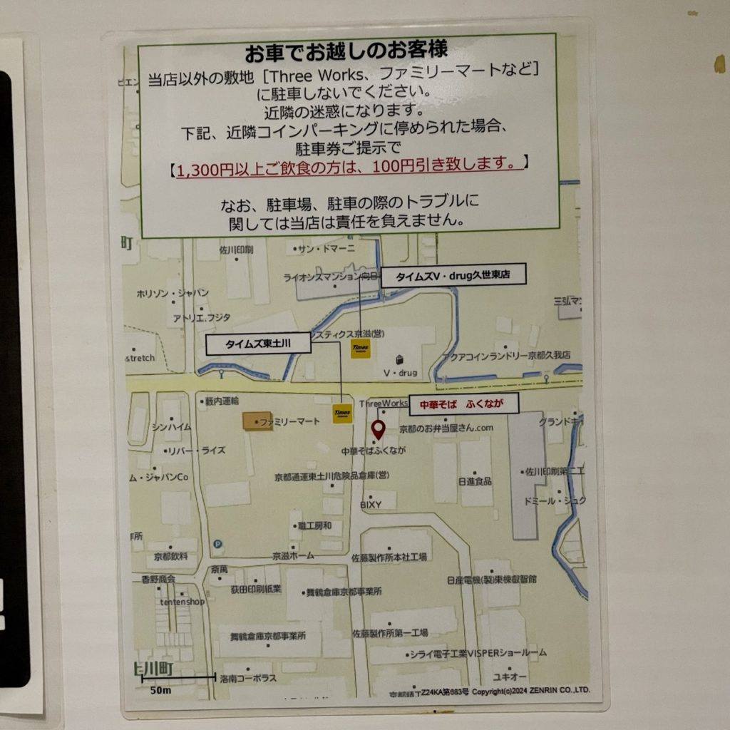 お店の駐車場はありませんが、指定のコインパーキングに駐車して駐車券を提示することで割引サービスが受けられます。