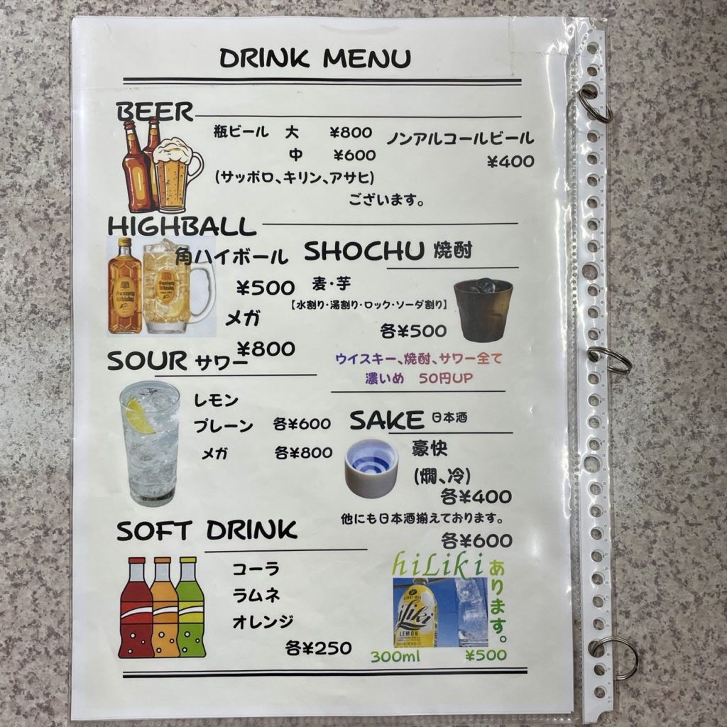 ドリンクメニューがたくさんあって、アルコール類も居酒屋かってぐらいの充実ぶり。