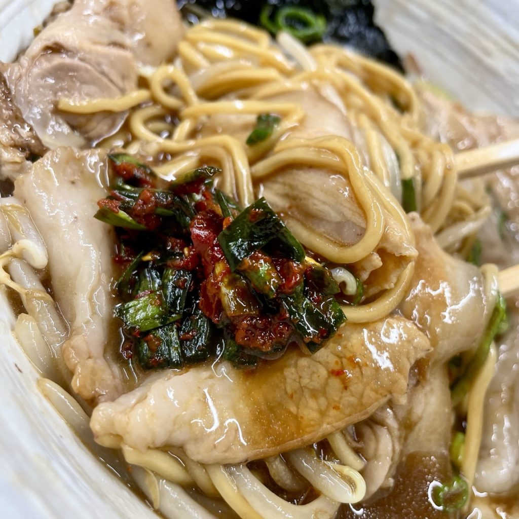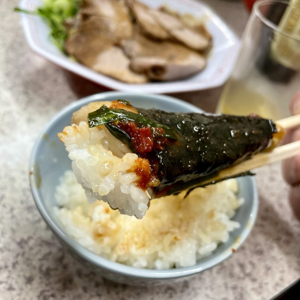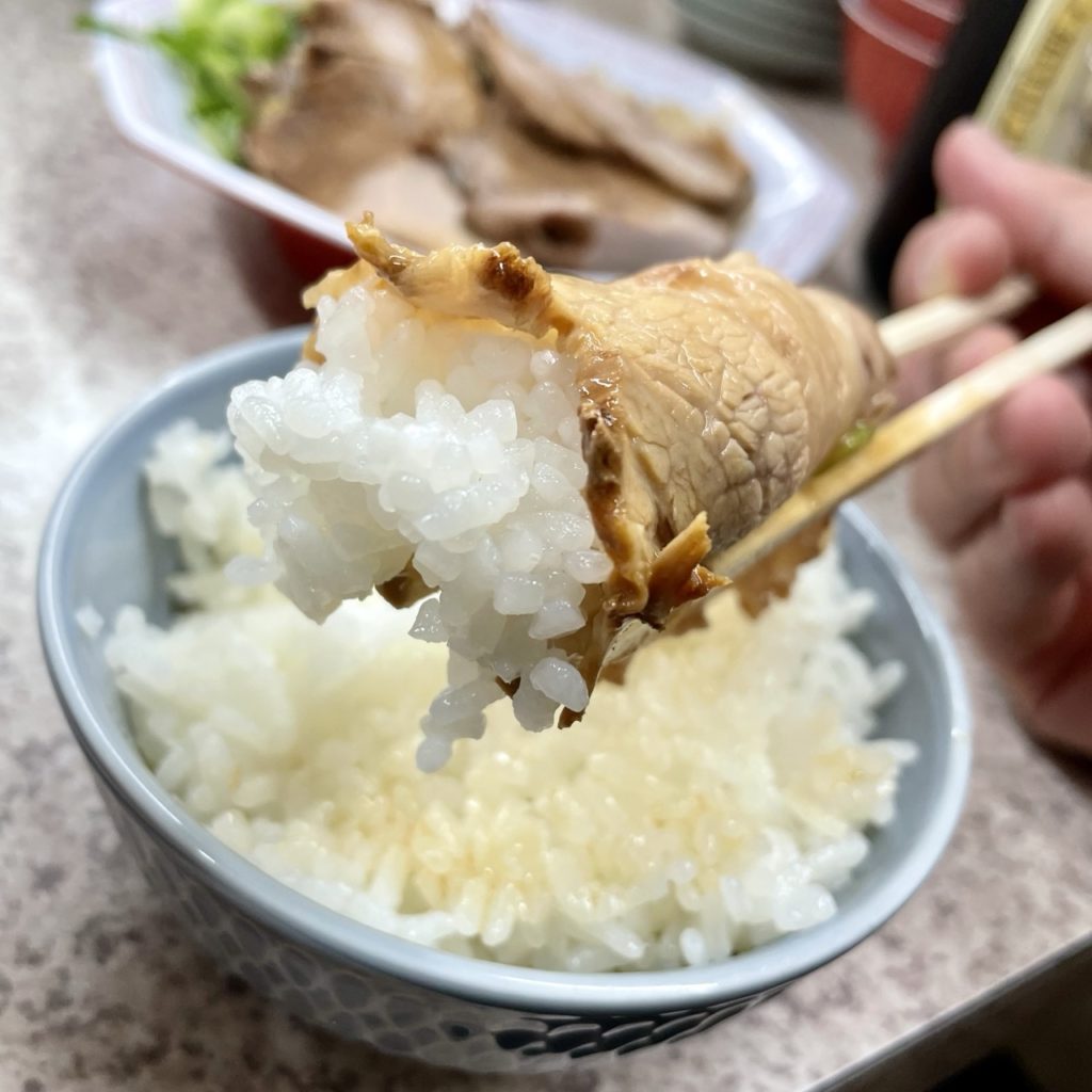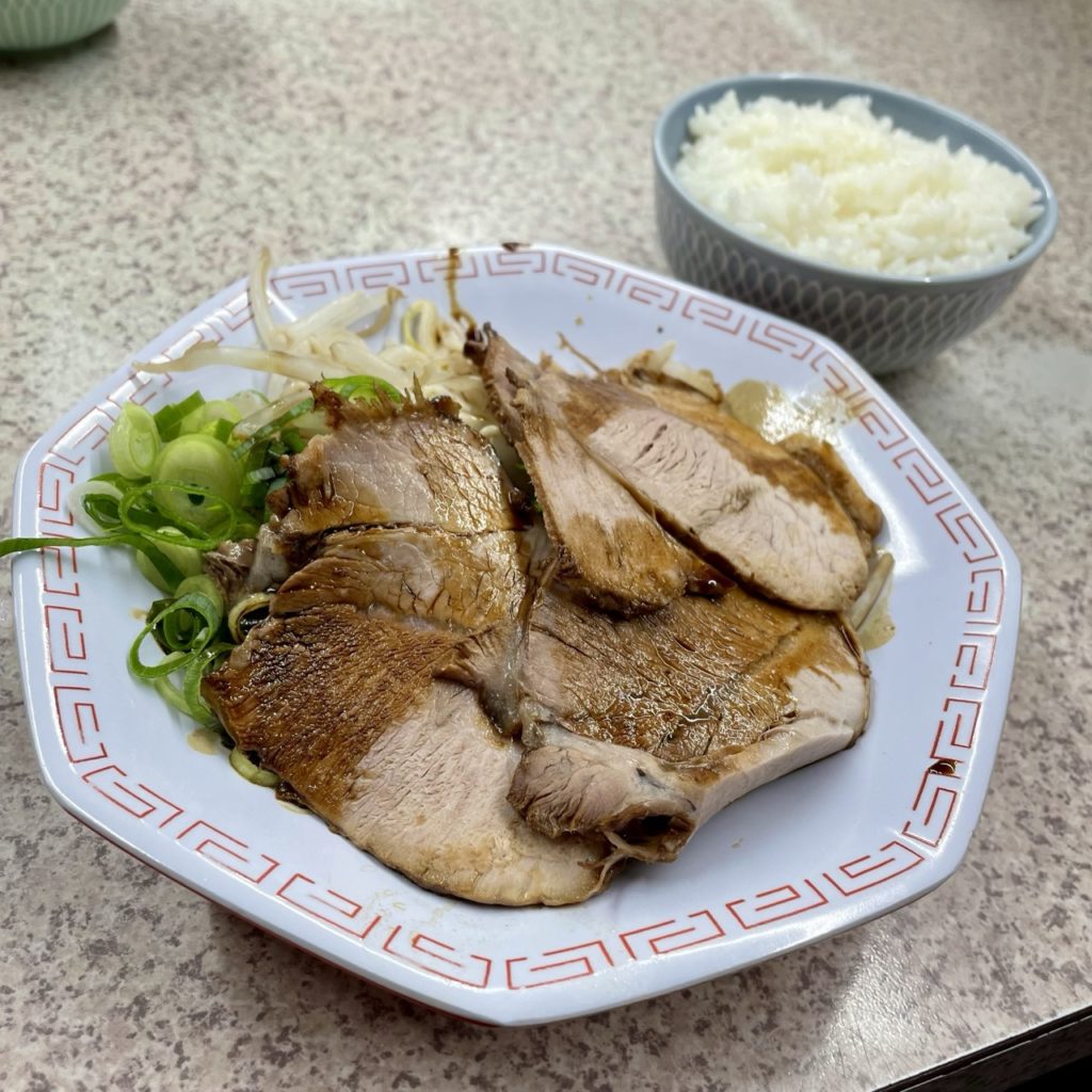 セットで頼んだ単品チャーシューは赤身で、ラーメンの方はシロ(脂身が多い肉)中心でちょうどよかった。