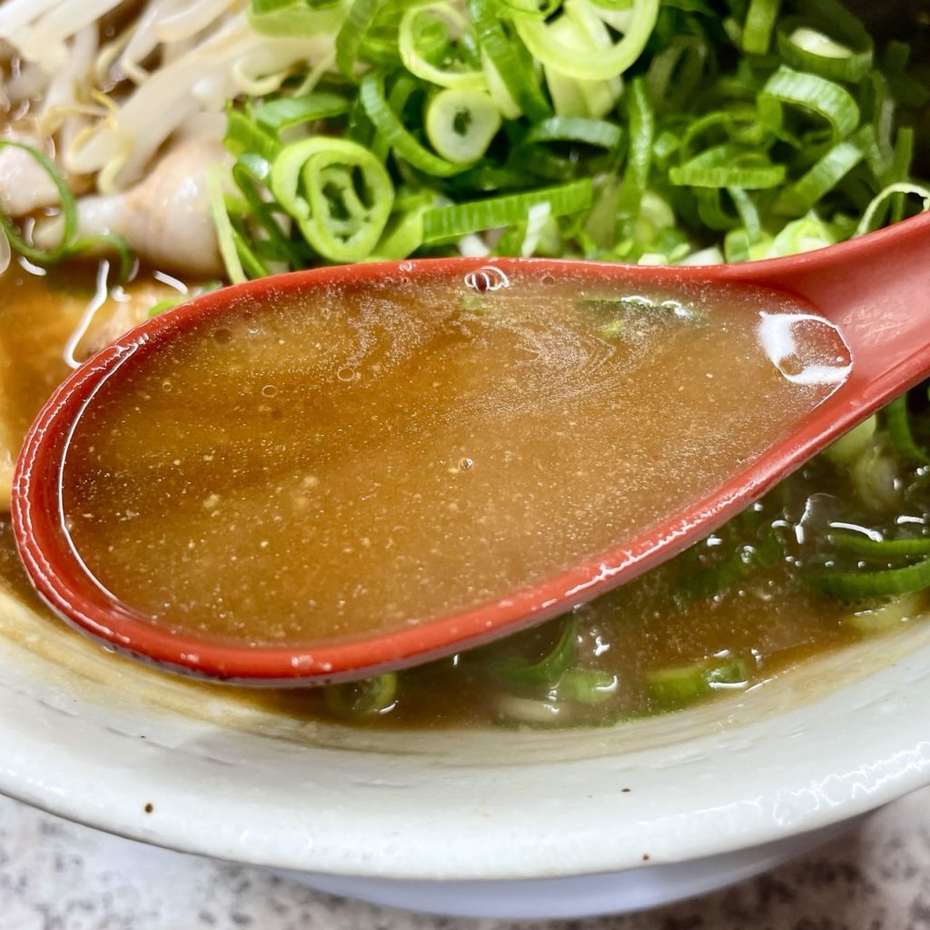 スープはとろみのある濃厚醤油味!