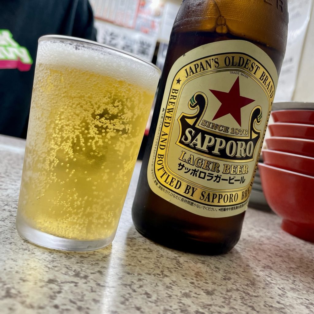 さぁまずは瓶ビールで喉を潤していく!