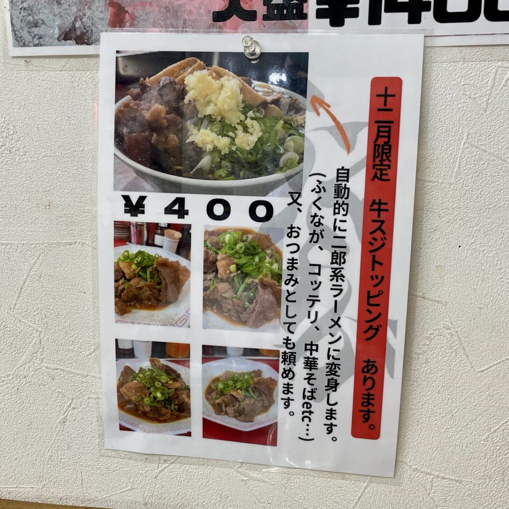 現在は終了していますが、トッピングすると二郎風にできる限定メニューもありました。