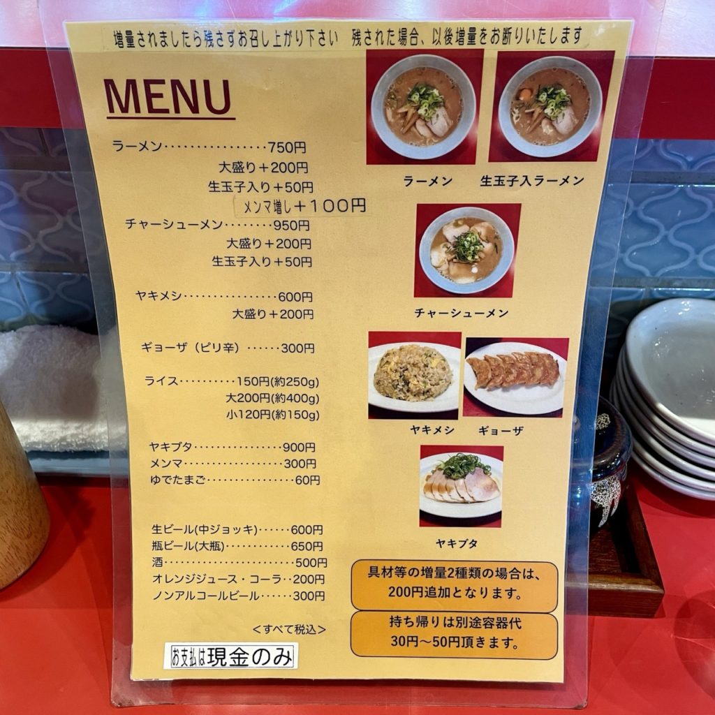 ラーメンの味は一種類のみ。
