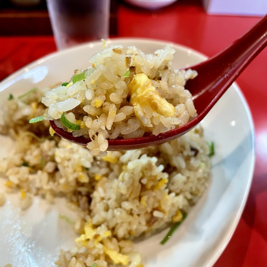 お米一粒一粒に油がコーティングされてる感じで、香ばしくておいしい。