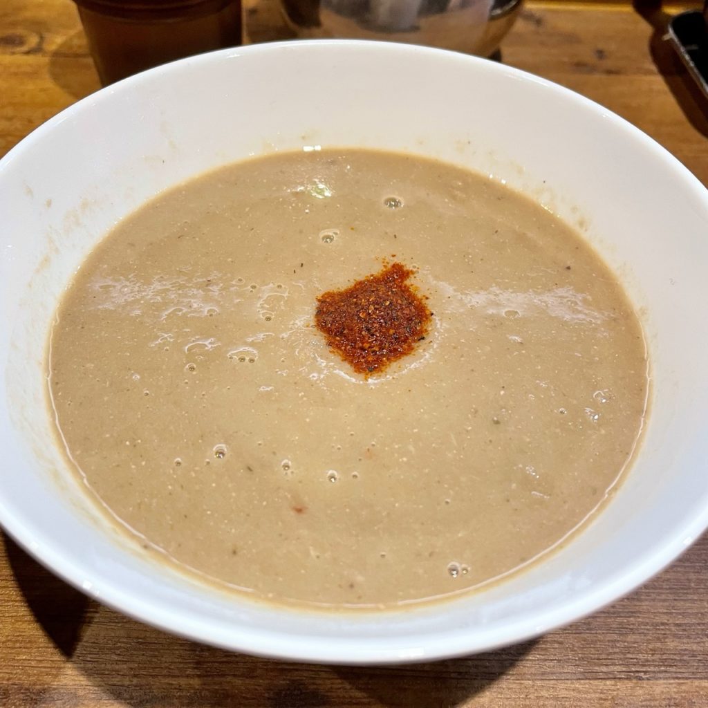 つけ汁側にはトッピングは無く一味のみ。