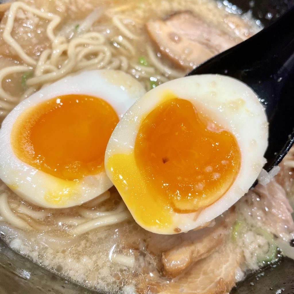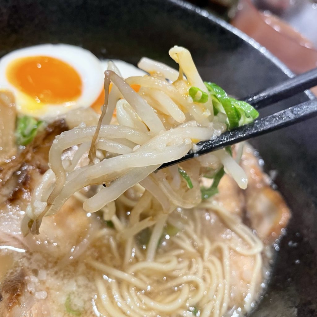 具材はチャーシュー・メンマ・もやし・ネギ、そして増した味玉になります。