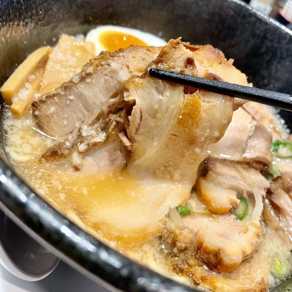 箸で掴めないほどの柔らかチャーシューめっちゃ美味い!脂身からいい旨味がスープに出てそうだぁ!