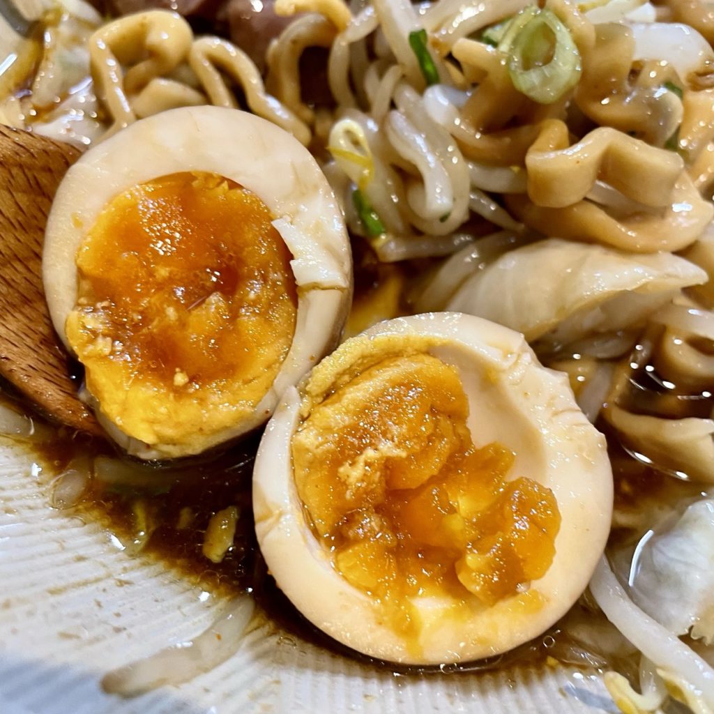 この濃い〜魚介ダレに漬けた黄身が美味い!